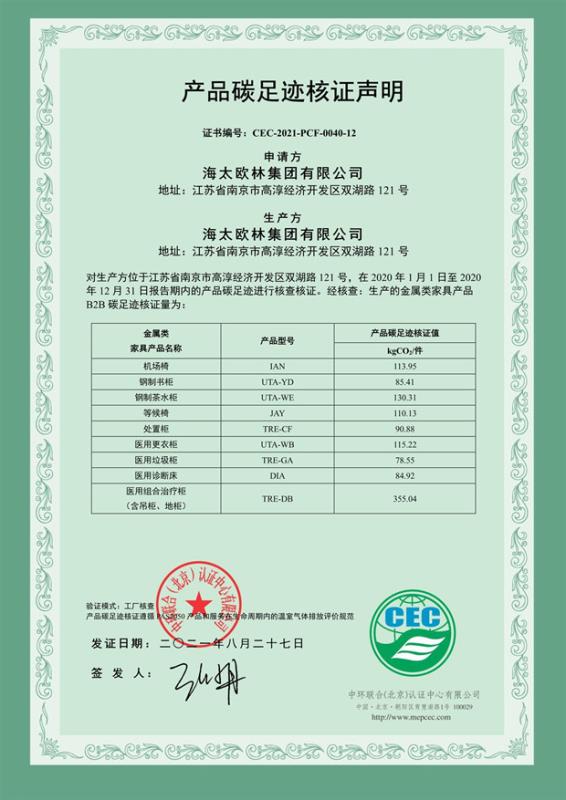 下一篇:海太歐林集團有限公司-產(chǎn)品碳足跡證書-CEC-2021-PCF-0040-11-金屬類家具
