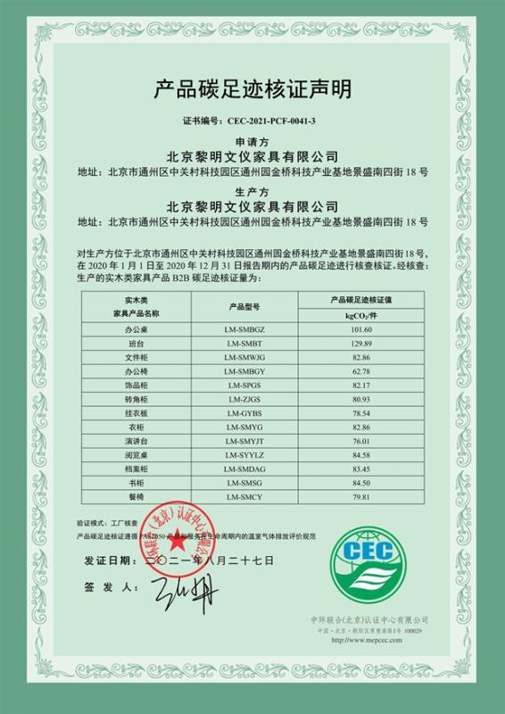 上一篇:北京黎明文儀家具有限公司-產品碳足跡證書-CEC-2021-PCF-0041-4-鋼木類家具