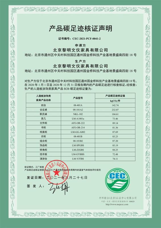 下一篇:北京黎明文儀家具有限公司-產(chǎn)品碳足跡證書-CEC-2021-PCF-0041-1-人造板覆面類家具