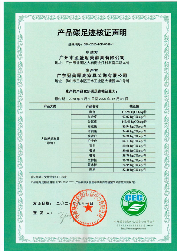 上一篇:廣東冠美頤高家具裝飾有限公司碳足跡證書-CEC-2021-PCF-0039-2-人造板類家具(涂飾)+人造板類家具(覆面)