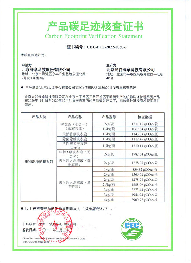 下一篇:北京興谷綠傘科技有限公司-CEC-PCF-2022-0060-1-織物洗滌護(hù)理系列