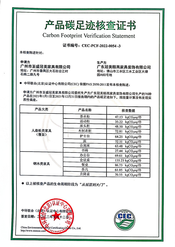 上一篇:廣東冠美頤高家具裝飾有限公司-CEC-PCF-2022-0054-4-鋼木類家具+金屬類家具