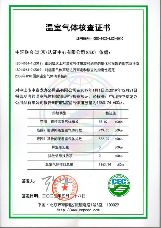 欄目:溫室氣體核查證書