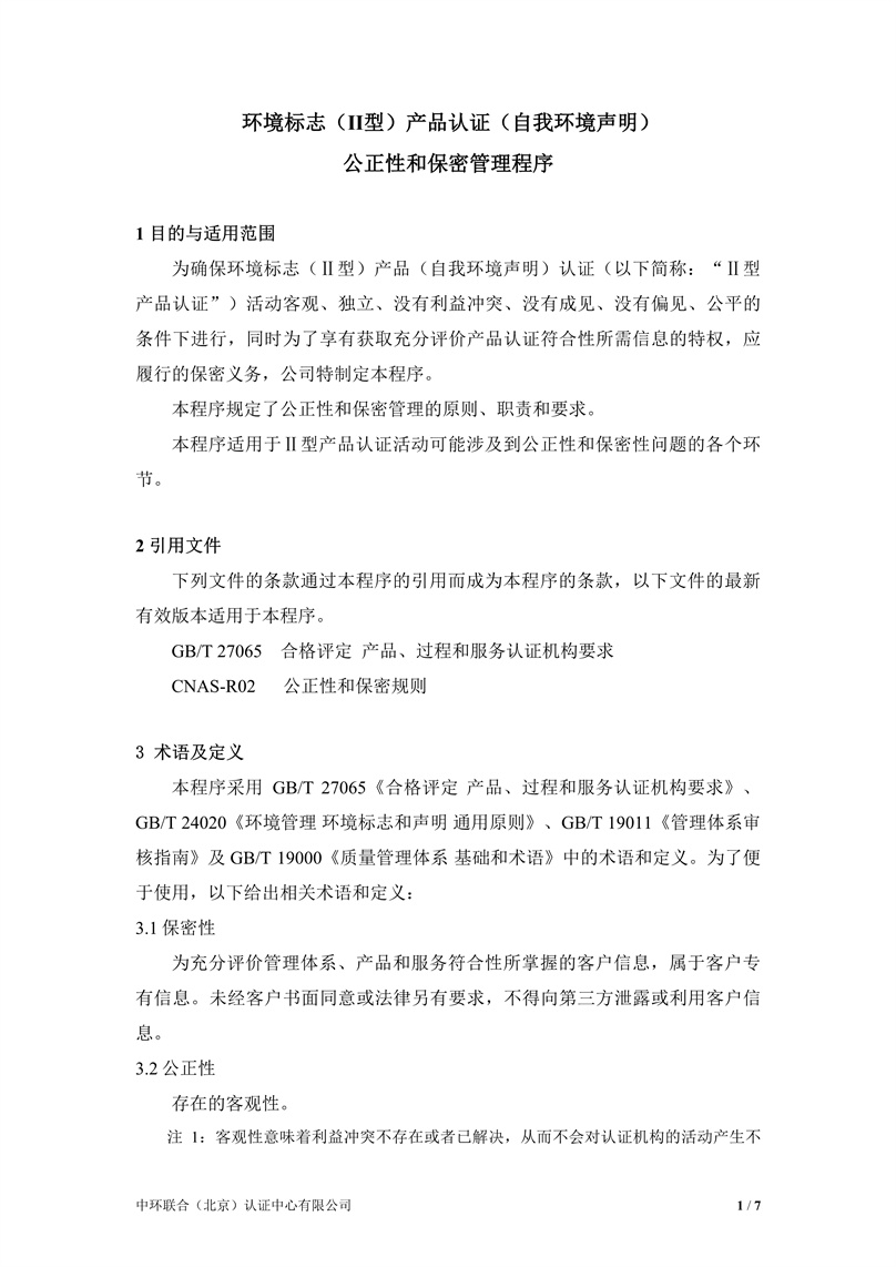 環境標志(Ⅱ型)產品認證(自我環境聲明)公正性和保密管理程序-2024-7-1.pdf
