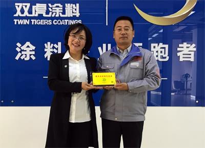 11月23日,中環(huán)聯(lián)合湖北分公司負(fù)責(zé)人翟春寰一行受邀拜訪了武漢雙虎涂料有限公司,與公司蔣董事長,鄭總經(jīng)理等領(lǐng)導(dǎo)就“綠色工廠”評價(jià)和“中國環(huán)境標(biāo)志”認(rèn)證助推雙虎涂料事業(yè)發(fā)展等問題進(jìn)行了深入的探討和溝通,并初步確定了合作意向。湖北分公司代表中環(huán)聯(lián)合總部就雙虎涂料對中國環(huán)境標(biāo)志的大力支持表示衷心的感謝,并授予武漢雙虎涂料有限公司“攜手共促綠色發(fā)展”榮譽(yù)稱號。
