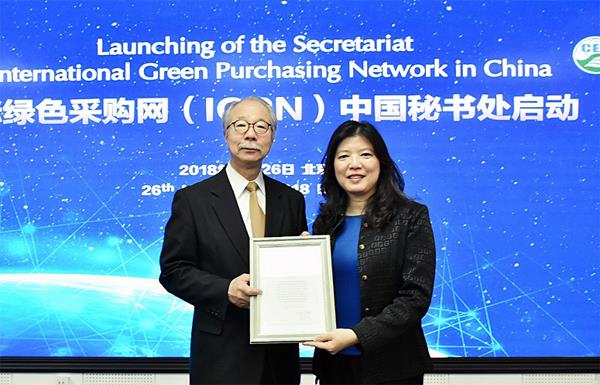 2018年11月26日,藉APEC典型綠色產(chǎn)品能力建設(shè)項目研討會——環(huán)境標志與綠色消費在京召開之際,國際綠色采購網(wǎng)絡(luò)(IGPN)中國秘書處啟動活動在京舉行。在與會領(lǐng)導和專家的見證下,IGPN主席中原秀樹先生將秘書處授權(quán)證書正式交給中環(huán)聯(lián)合認證中心(CEC)。