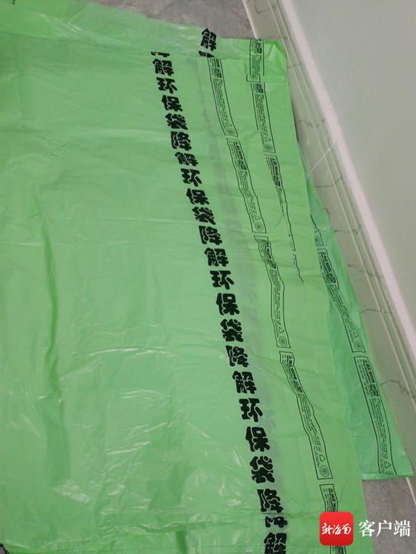 10月10日,執(zhí)法人員對位于??谑行阌^(qū)金鹿工業(yè)園的海南鑫匯諾包裝制品有限公司生產(chǎn)場地進行檢查,發(fā)現(xiàn)該公司生產(chǎn)銷售的3款一次性塑料袋的袋身均標有“中國環(huán)境標志”字樣和圖標,另有1款塑料袋標有“全降解塑料袋,降解率100%”字樣。在現(xiàn)場,執(zhí)法人員查封問題塑料袋共計7600個。