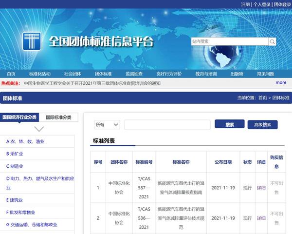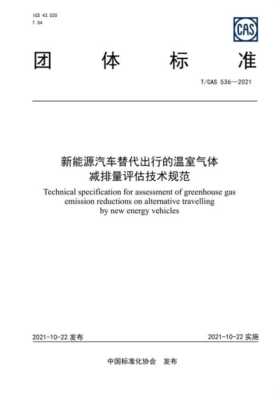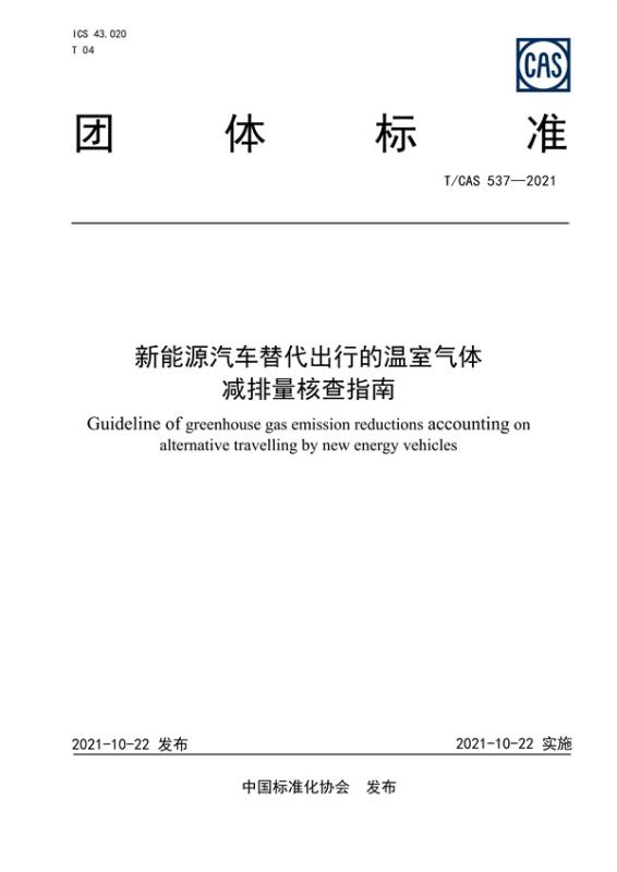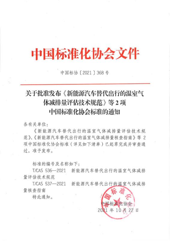 近日,由中環聯合(北京)認證中心有限公司和中汽數據有限公司牽頭,聯合南開大學、比亞迪汽車工業有限公司、戴姆勒大中華區投資有限公司、重慶長安汽車股份有限公司、一汽-大眾汽車有限公司等單位共同參與制定的《通過新能源汽車替代出行實現溫室氣體減排量評估技術規范》(TCAS 536—2021)和《通過新能源汽車替代出行實現溫室氣體減排量核查指南》(TCAS 537—2021)2項團體標準正式發布。