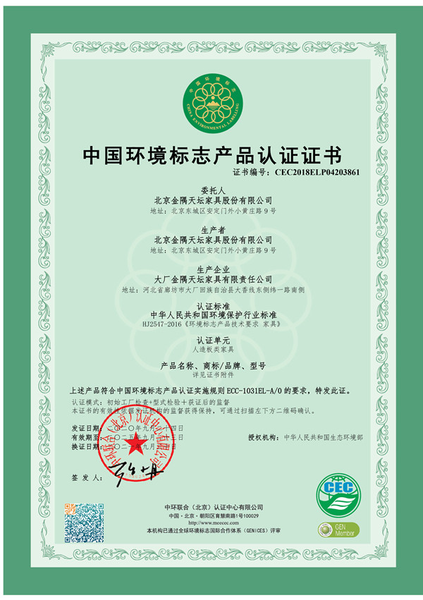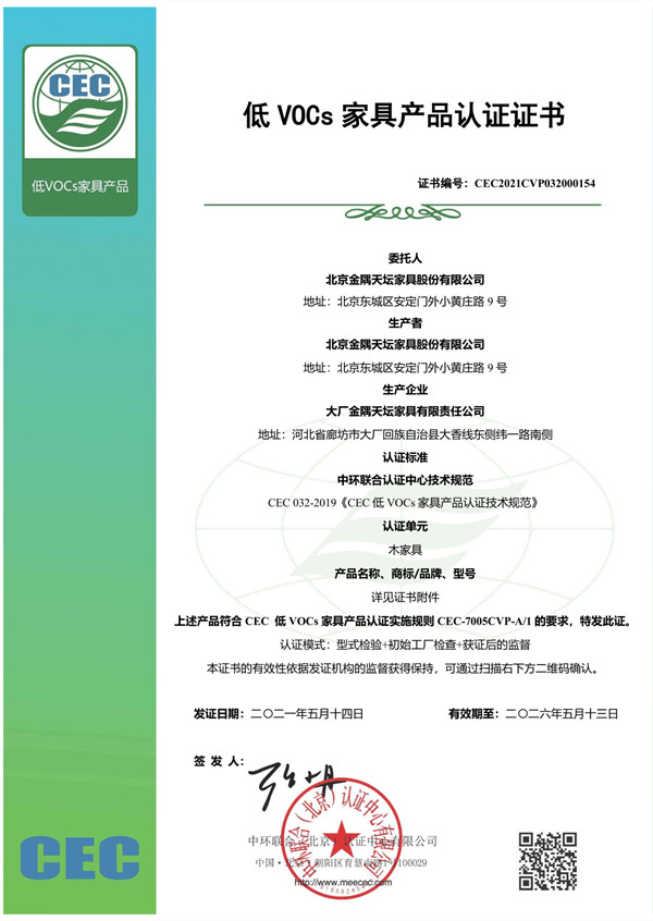 金隅天壇作為中環聯合的認證客戶,致力于建設低碳、環保型企業,其旗下的多個家具產品連續多年獲得環境標志認證證書,部分產品還通過了CEC低VOC家具產品認證和CEC家具產品環保衛士認證。HJ 2547《環境標志產品技術要求 家具》這一環境標志標準及CEC標志自愿性產品認證標準,從產品原材料端開始,對其在生產和使用過程的全生命周期提出綠色要求,督促企業清潔生產,以此保障人體健康,保護生態環境。這些“冬奧專供”的家具從功能和需求出發,研發到生產過程均嚴格按照技術標準執行,實現了產品全生命周期的綠色,為運動員和工作人員提供了舒適、健康的生活環境。此外,多款家具還實現了創新設計,在冬奧閉幕后能夠進行高效轉換實現冬殘奧會的適配使用。這種設計響應了“節儉辦奧運”的號召,也極大體現了中國方案中的環保理念。