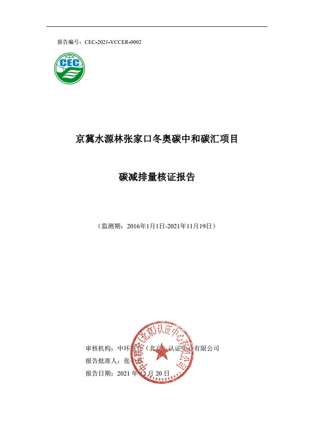 中環聯合(北京)認證中心有限公司(以下簡稱中環聯合)作為張家口市冬奧林審定核證機構,在此次捐贈標準要求較高、時間緊任務重的情況下,對“京冀水源林張家口冬奧碳中和碳匯項目”監測期所產生的的林業碳匯量進行了審核,并編制提交了《京冀水源林張家口冬奧碳中和碳匯項目碳減排量核證報告》,協助張家口市圓滿完成了冬奧林業碳匯補償中和任務。近日也收到了來自張家口市林業和草原局的感謝信。