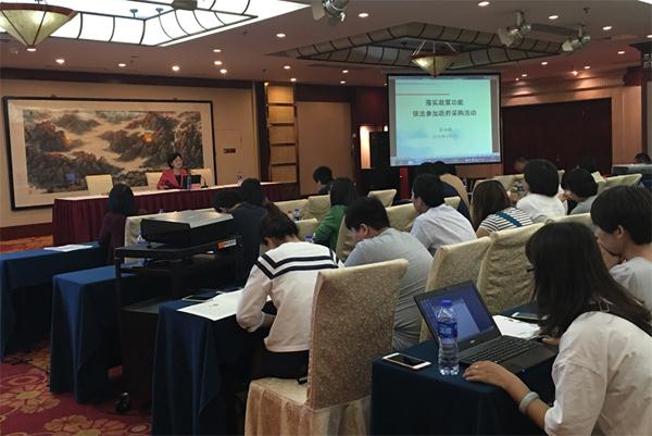 中國政府采購協會(籌)吳小明處長介紹了政府采購政策功能、企業如何參與政府采購、措施及相關注意事項,并分享了政府采購精彩案例;審核部劉曉飛介紹了《環境標志產品保障措施指南》及企業認證流程規則。