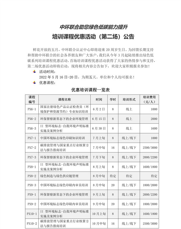 中環聯合認證中心對外培訓課程優惠活動(第二場)公告